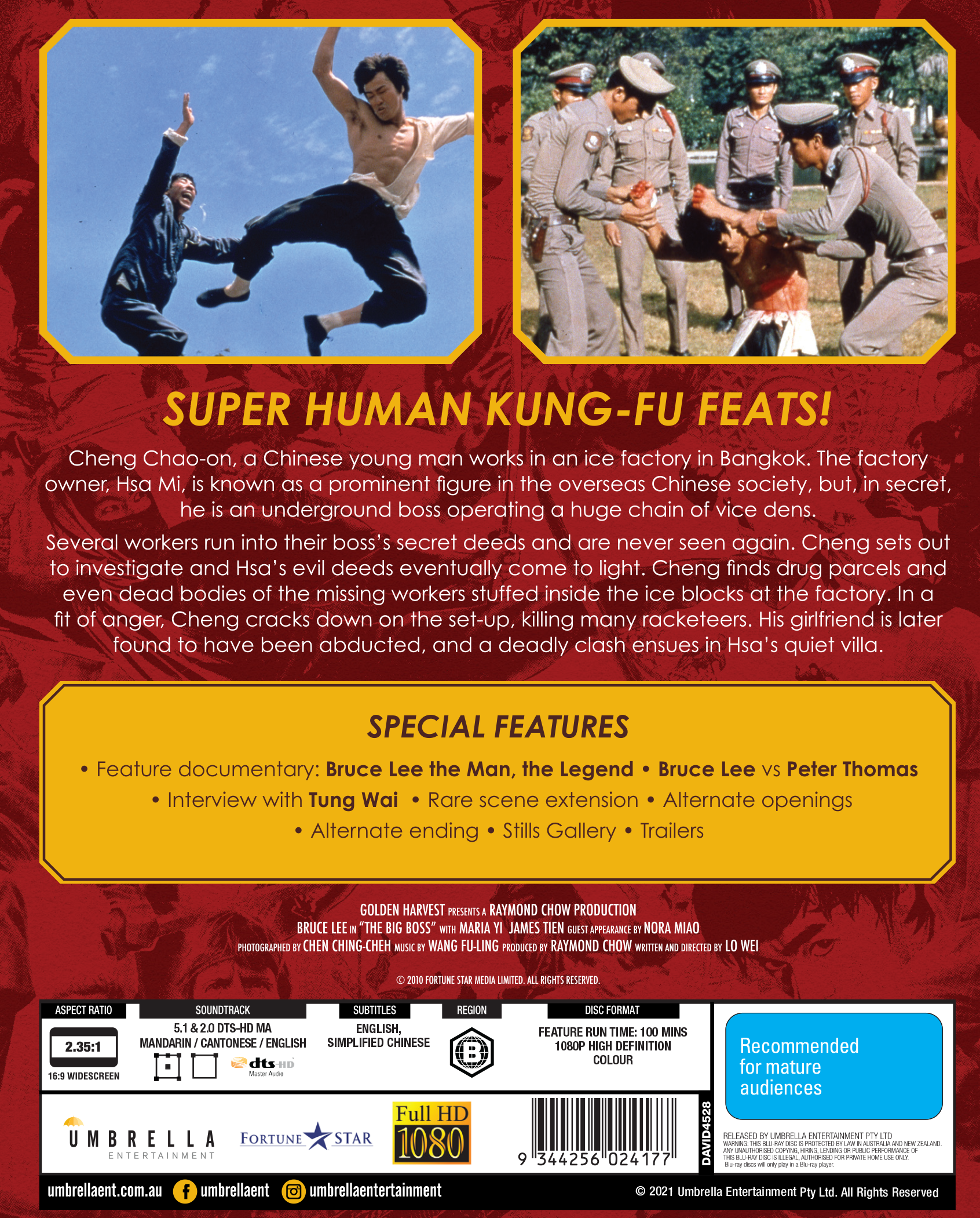 The very first entry in our brand new sub-label 'Films of Fury' is the epic The Big Boss, starring Bruce Lee. This volume includes exclusive extra features, O-ring packaging, and a limited edition collector's postcard, based on the original theatrical poster.