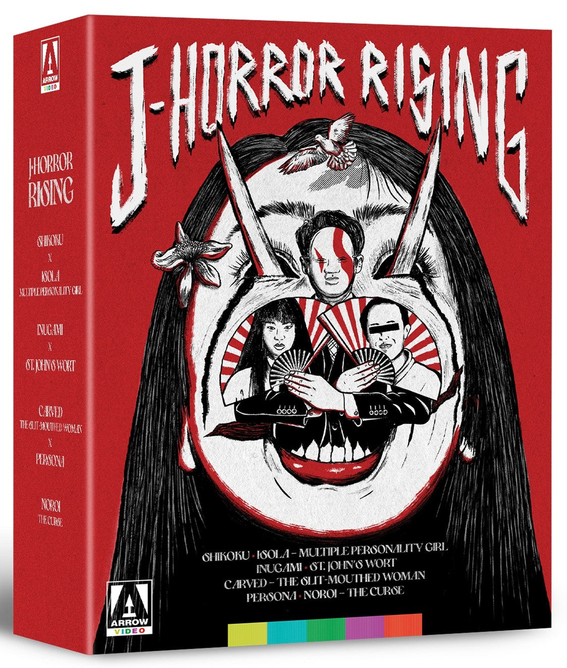 Remastered from the best available elements and packed with a host of new and archival extras, J-Horror Rising presents seven of the genre's most distinctive titles. In the ghostly pastoral horror of Shikoku, a young woman returns after many years to her rural birthplace, only to find her best friend from childhood has died by drowning when just sixteen. The dead girl's mother, the local Shintoist priestess, has embarked on the region's famous pilgrimage - but why is she walking backwards? The aftermath of the devasting Kobe Earthquake of 1995 creates fissures in the already fractured mind of a high-school girl in Isola: Multiple Personality Girl, allowing an unwelcome intruder to set up home in her head and leaving a volunteer worker with psychic powers to determine which of her personas is the fake one. In Inugami, a teacher finds himself drawn to a local papermaker, only to find himself the subject of some hostility from her extended family, who are rumored to be the descendants of the guardians of ancient evil canine spirits. Megumi Okina (Ju-On: The Grudge) plays the art designer for a horror-themed videogame in the innovative St. John's Wort, who is forced to confront her childhood traumas when her colleagues ask her to gather visual materials from the creepy gothic mansion she has inherited from her estranged artist father. Carved: The Slit-Mouthed Woman features the titular predatory murderess drawn from urban legend, where it turns out home isn't the safest place for her potential child victims in this disturbing supernatural horror. A new craze for wearing ceramic masks sweeps the students of a high school, unleashing a wave of anonymous juvenile delinquency amongst the literal fashion-victims of Persona. Last but not least, the chilling Noroi: The Curse adopts a pseudo-documentary format as an investigative reporter into paranormal phenomena is forced to confront horrors beyond his wildest imagination after learning about an ancient folkloric demon.