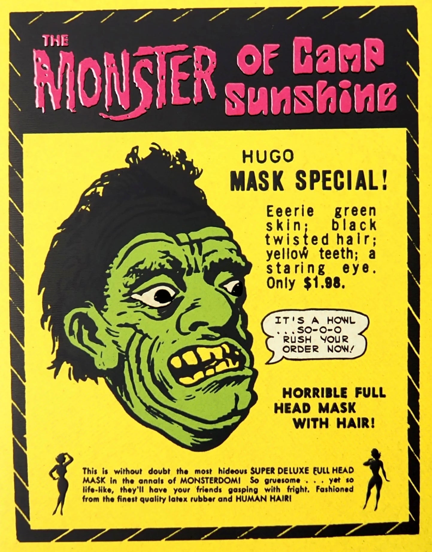 THE MONSTER OF CAMP SUNSHINE: Shot by anonymous maniacs in New York, this is a trash-art berserker that feels like what would happen if a 1980s slasher was teleported inside of a 1960s nudist film. A nurse and fashion model head to Camp Sunshine for a weekend of fun, sun, and cigarettes. But little do they know that Hugo, the camp’s gardener, has been transformed into an axe-wielding psychopath after drinking radioactive water! Combining experimental visuals with camp flair, this is a crackpot time capsule featuring Monty Python-esque animation, someone named Ron Cheney, Jr., and, at the end, "a brief summary of the movie for those who wish to relive its magic moments."