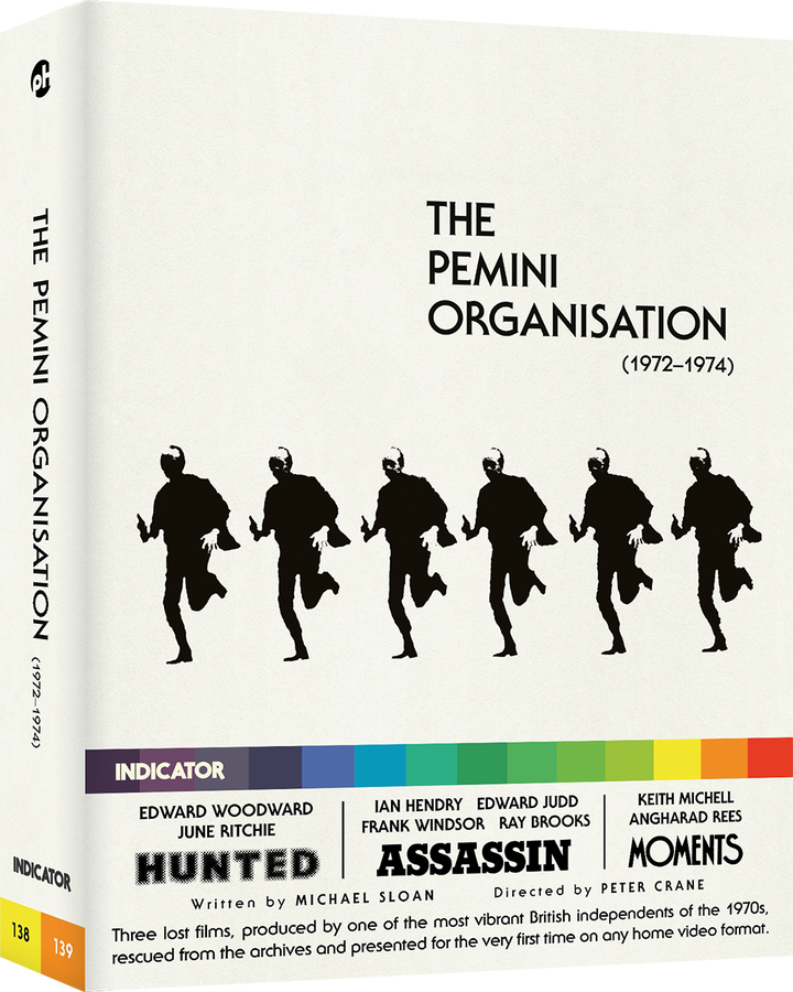 In the early 1970s, three ambitious friends – Peter Crane, Michael Sloan and Nigel Hodgson – combined the first letters of each of their names and set up the Pemini Organisation, a young and vital independent British film production company. Active between 1972 and 1974, Pemini produced one mid-length film, Hunted, a high-suspense thriller starring Edward Woodward and June Ritchie, and two feature films: Assassin, a grimly realistic spy film starring Ian Hendry, Edward Judd, Frank Windsor, Ray Brooks and Mike Pratt; and Moments, an enigmatic romantic mystery starring Keith Michell and Angharad Rees. When Pemini disbanded, the films disappeared into the ether...